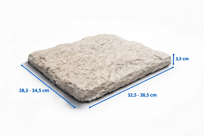Kako se kamen suši i stabilizira, kroz period od otprilike 2 do 3 mjeseca postupno dolazi do izražaja njegova konačna, prirodna nijansa. Upravo taj proces daje kamenu autentičan i realističan izgled, s blagim varijacijama u tonu koje dodatno naglašavaju njegovu estetiku i sličnost s prirodnim kamenom.