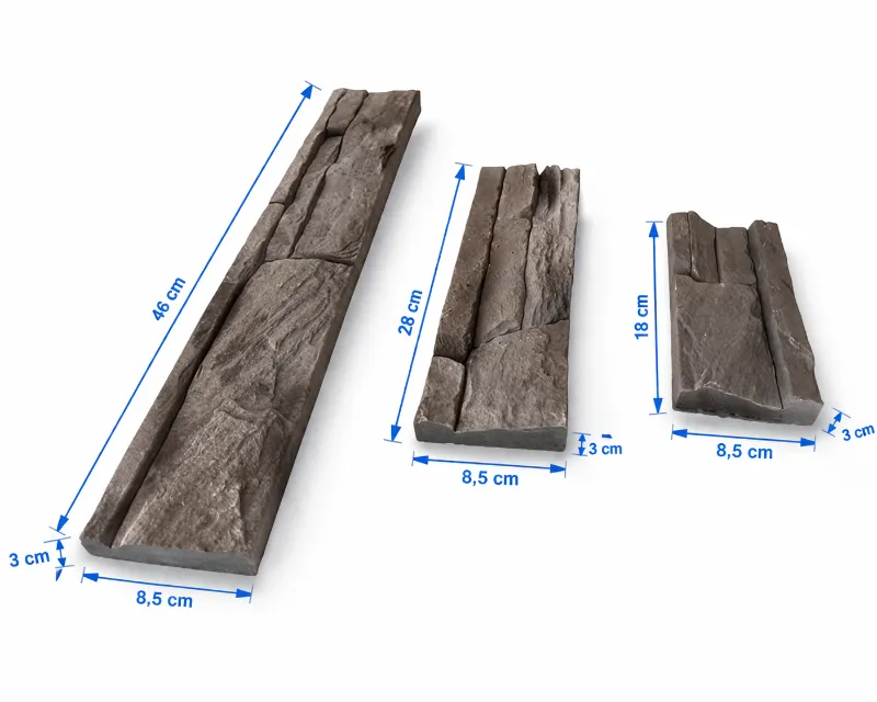 Također posjeduje kutne elemente koji uvelike olakšavaju montažu ukoliko oblažete dimnjak u dnevnom boravku ili potporne stupove na fasadi. Ono što krasi ovaj model je izuzetno mala debljina od 2 cm i na najdebljem dijelu 3 cm. Dekorativni kamen TIP TOP se proizvodi u dvije boje i pakira se u kartonske kutije po 1m2.